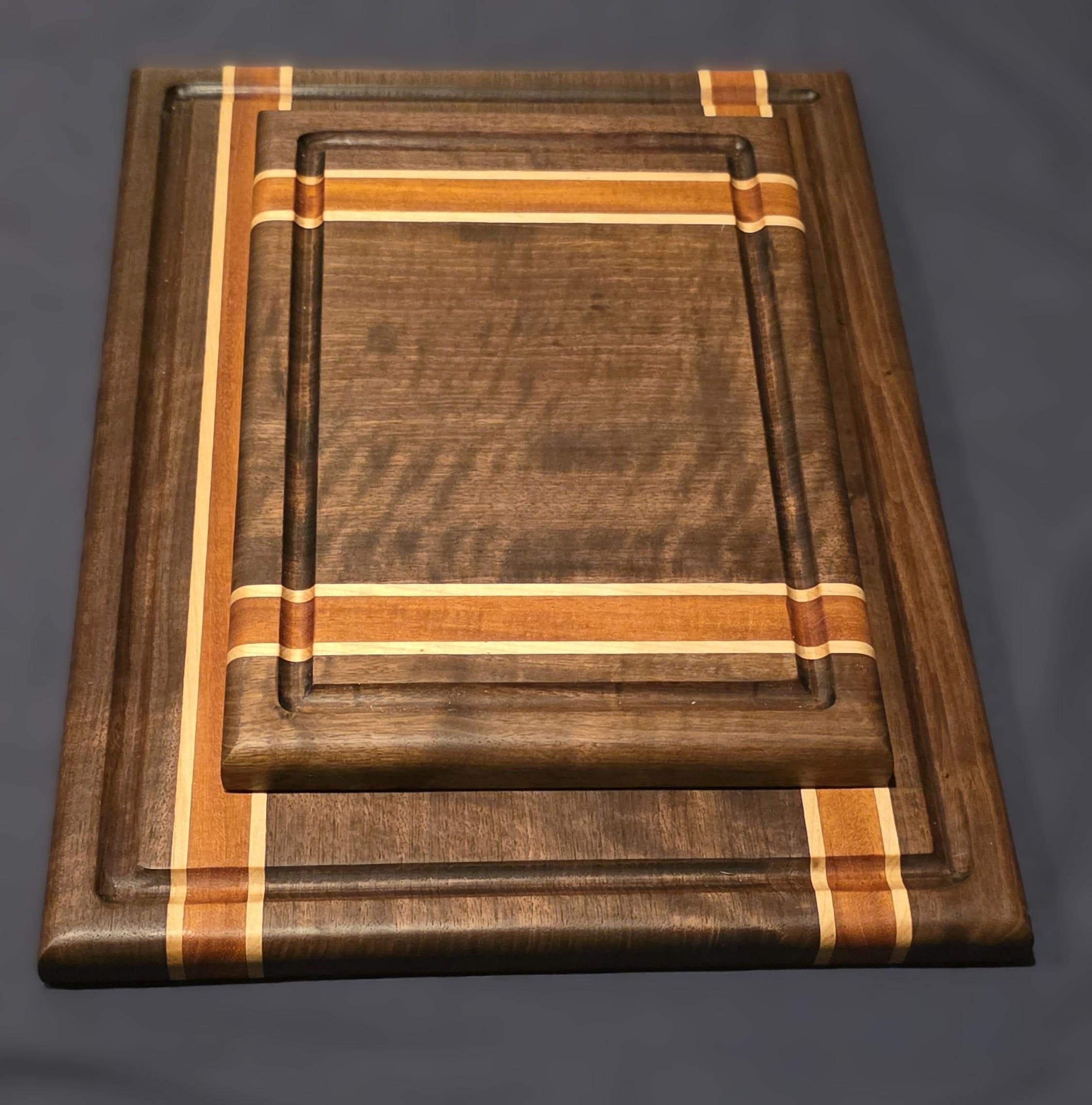 Luxury 2-Piece Walnut Heirloom Cutting Board Set | Artisan Mahogany & Maple Stripe Inlay | The Ultimate Gourmet Kitchen Gift