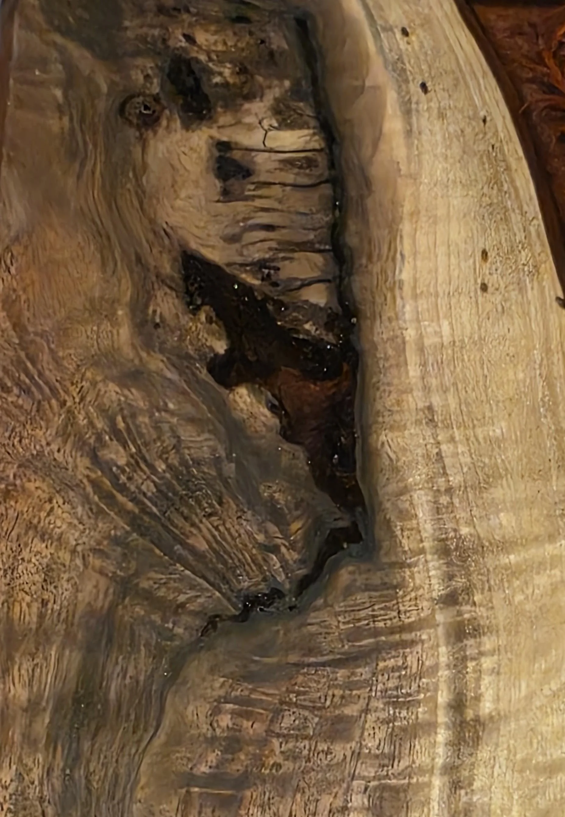 This one-of-a-kind charcuterie board is a fusion of rugged natural beauty and refined resin artistry. Handcrafted from a premium slab of Figured Walnut, this board features rare "curly" grain patterns that shimmer and shift as they catch the light.